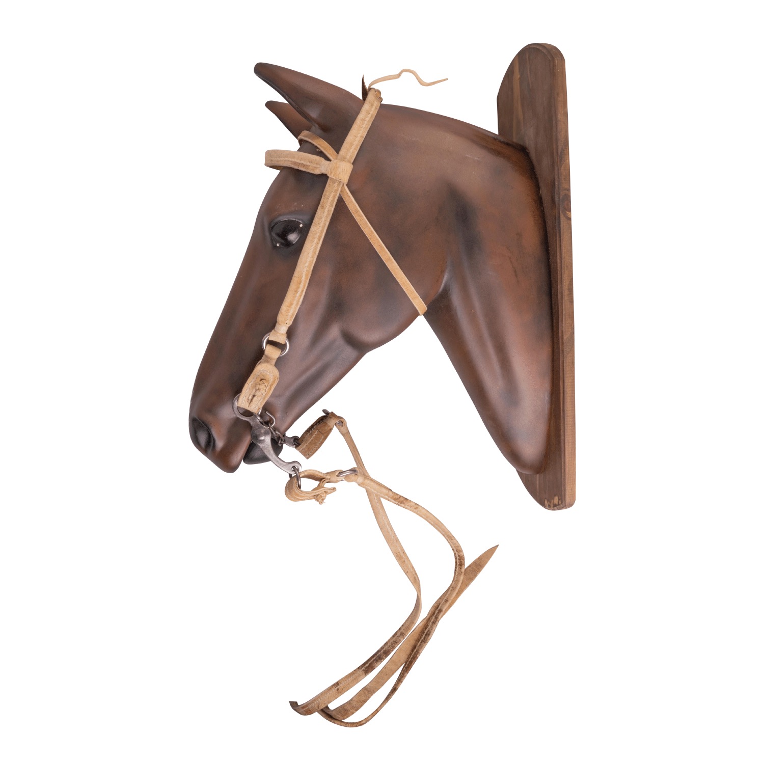 Cabeza De Caballo Con CabezadaFreno y Rienda En Cuero Crudo Clasica