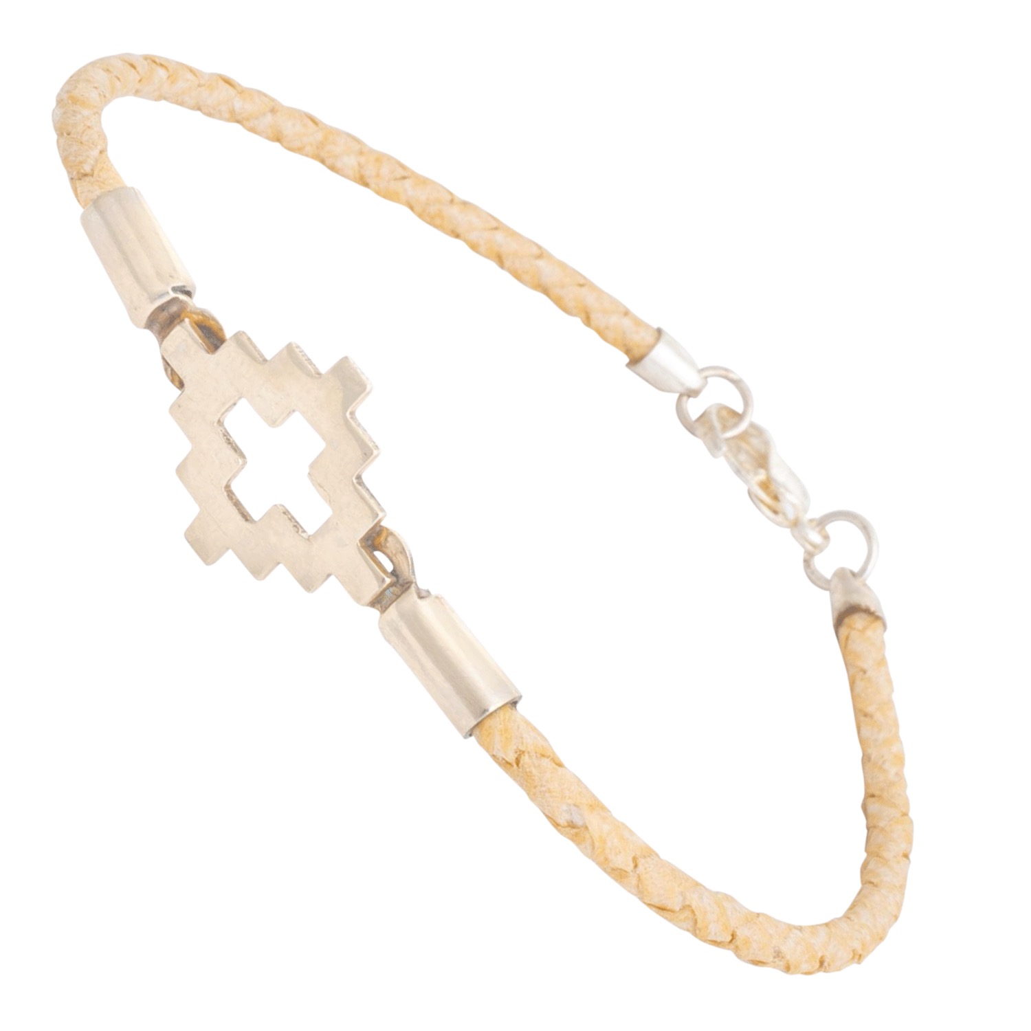 Pulsera De Cuero Crudo Trenzado Con Detalles y Dije En Alpaca